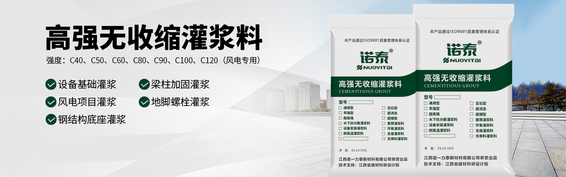 江西諾一力泰新材料有限公司位于江西宜春奉新縣,是專業從事灌漿料、水泥路面修補砂漿抗裂砂漿、防水砂漿、保溫砂漿、隔聲砂漿、粘結砂漿等砂漿系列產品生產銷售的廠家。